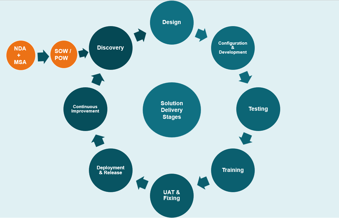 Deployment & Release -Following successful User Acceptance Testing (UAT) and resolution of any identified issues, the solution is deployed and released for use.